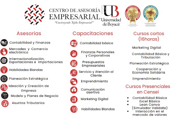 El Centro de Asesoría Empresarial ofrece servicios integrales para apoyar la creación, desarrollo y sostenibilidad de empresas, desde emprendimientos hasta grandes organizaciones. Su propósito es fortalecer la gestión empresarial mediante acompañamiento especializado en áreas estratégicas, financieras, administrativas y legales.