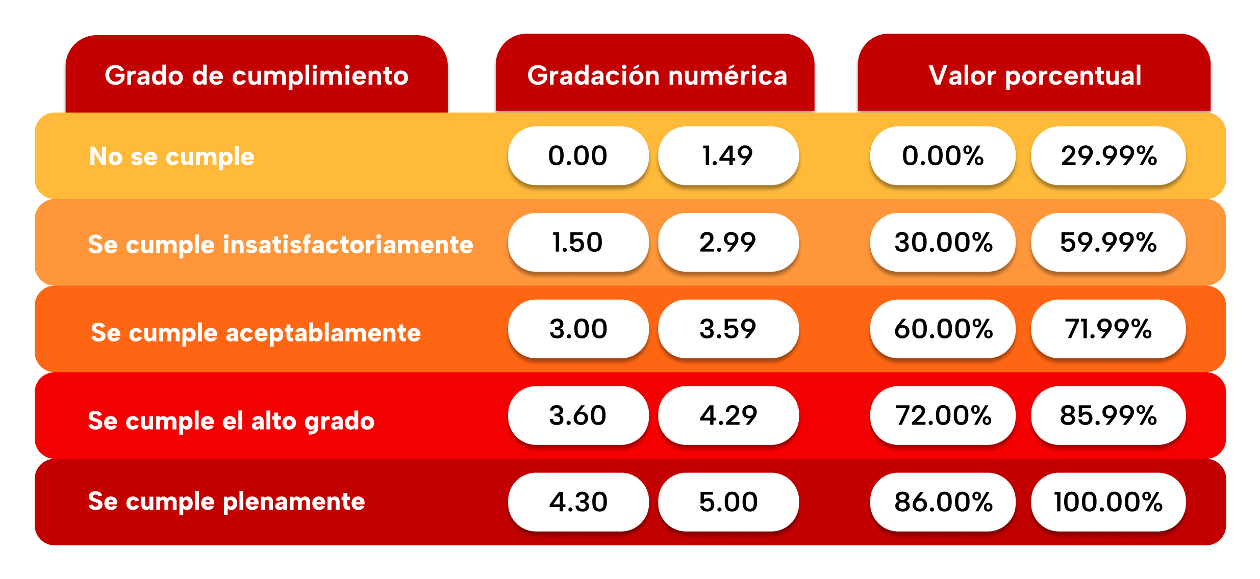 Para los procesos de autoevaluación institucional y de programas, la Universidad de Boyacá definió la escala de calificación que se presenta en la siguiente tabla, la cual fue aprobada mediante el Acuerdo del Consejo Directivo No. 1194 de 2019.