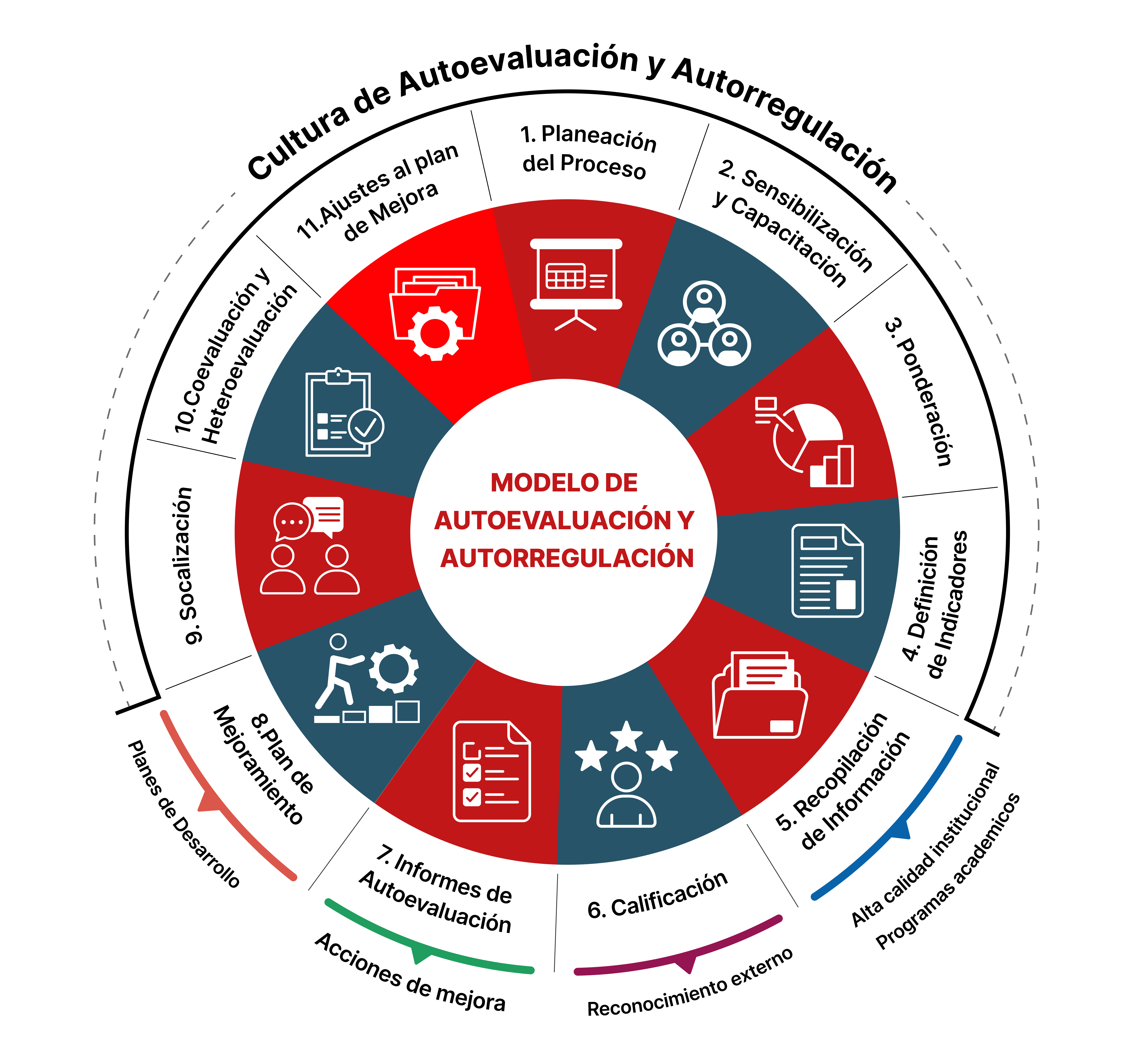 Para realizar este proceso se implementó el modelo de Autoevaluación y Autorregulación definido en el Sistema de Aseguramiento de Calidad de la Universidad SACUB, el cual se presenta en la siguiente figura.