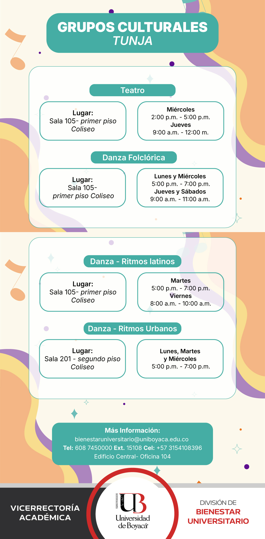Si eres estudiante de la UdeB te invitamos a formar parte del Grupo de Teatro, Danza Folclórica o Danza.