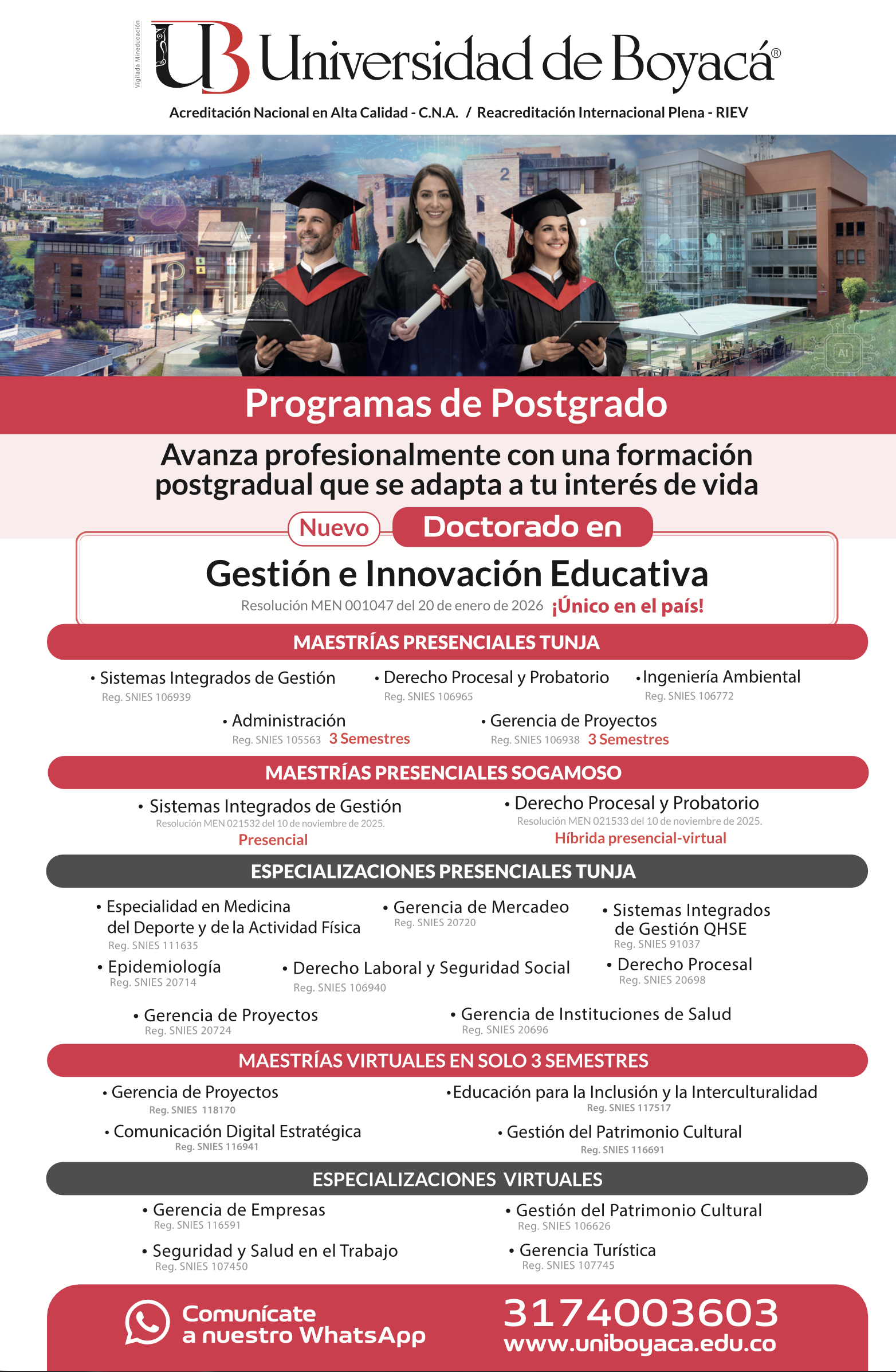 Hoy es el último día para completar tu inscripción a los programas de posgrado en la Universidad de Boyacá.
