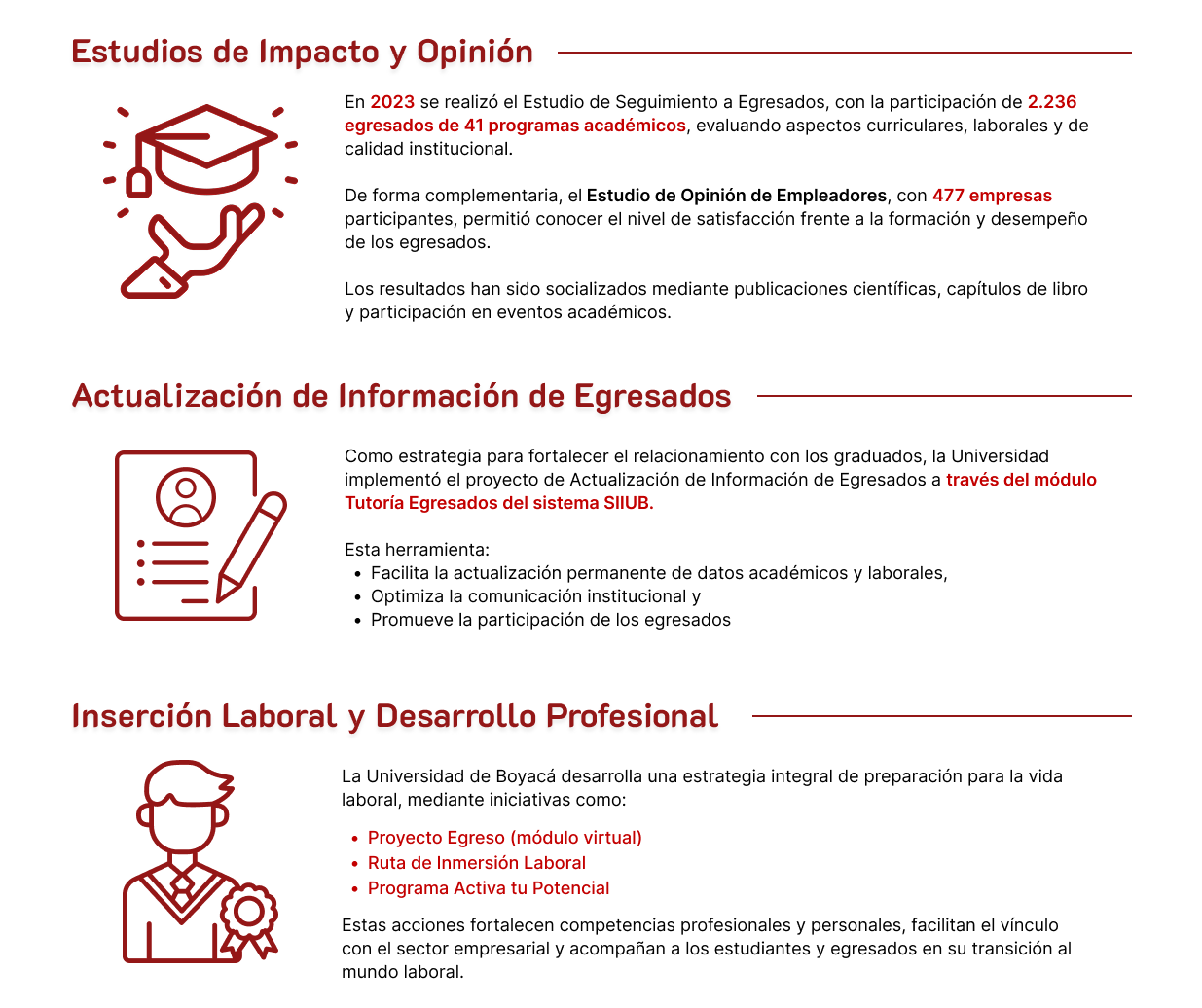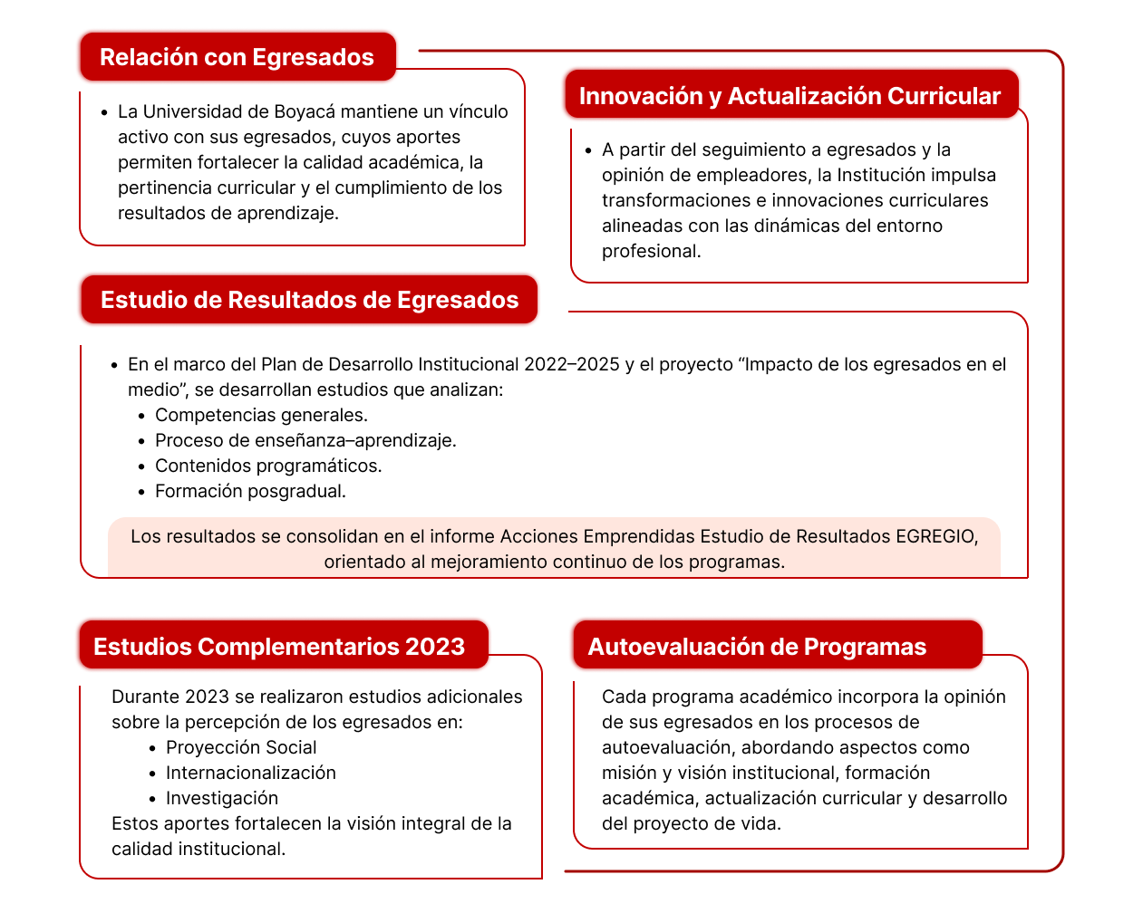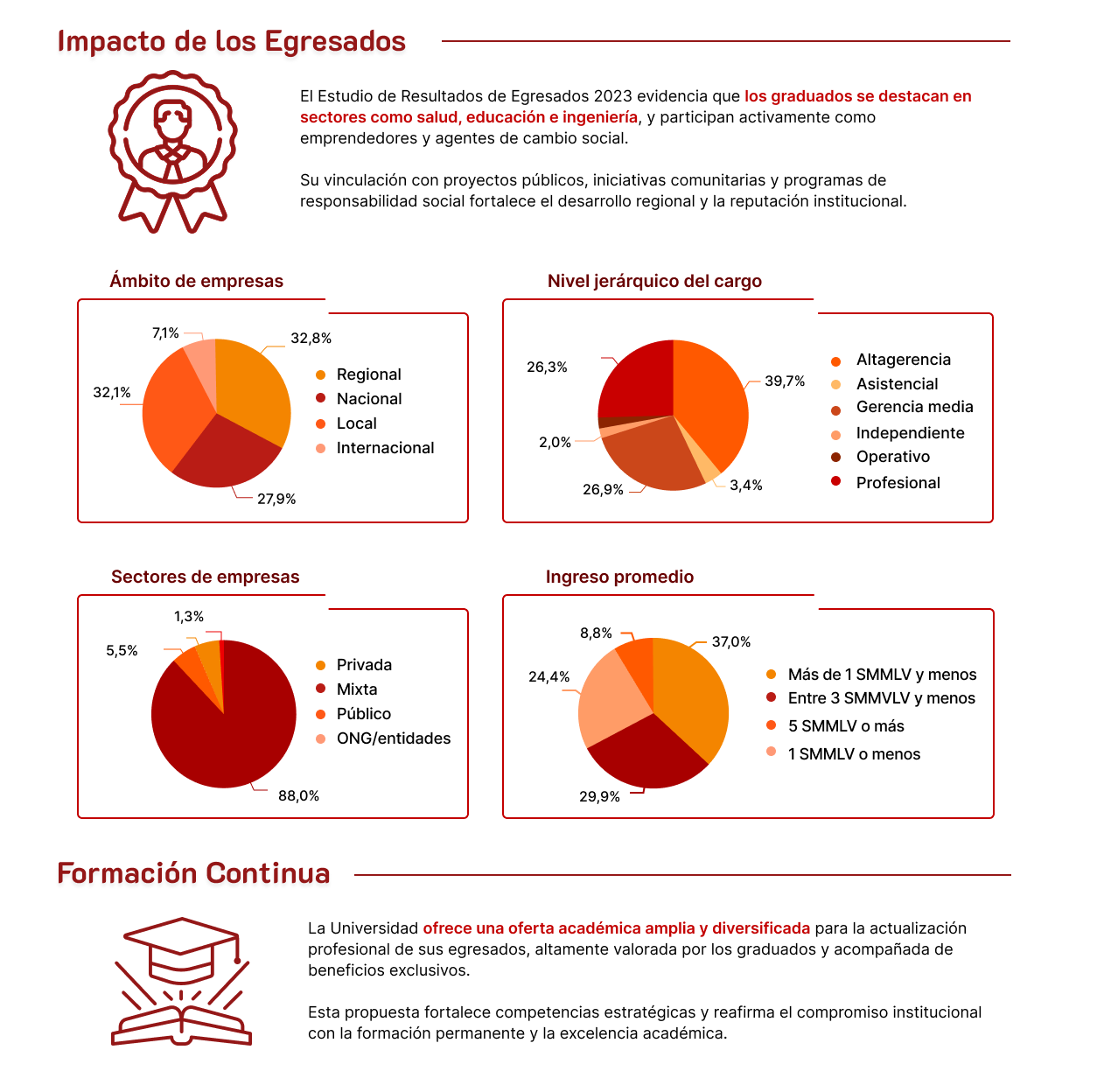 Desde 2018, el Centro de Gestión y Servicios para el Egresado – EGREGIO desarrolla el proyecto institucional de Seguimiento a Egresados, una herramienta estratégica para evaluar el impacto académico, laboral y social de los profesionales formados en la institución.