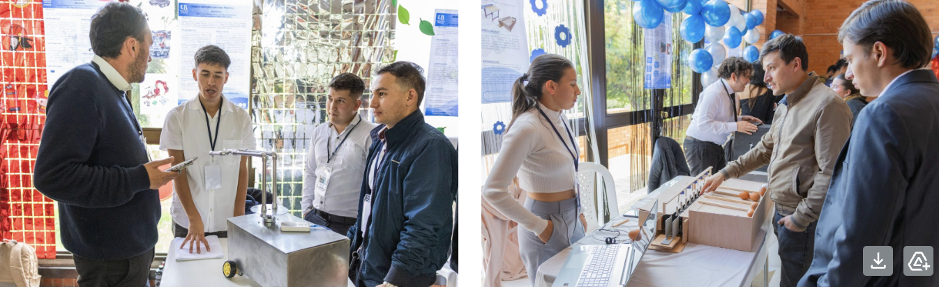 La creatividad, el ingenio y la capacidad de transformar el entorno volvieron a ser protagonistas en la XXIV Muestra de Proyectos del Programa de Ingeniería Mecatrónica, realizada el martes 18 de noviembre. Este espacio, que se ha consolidado como una de las vitrinas académicas más representativas de la Universidad de Boyacá, reunió a estudiantes de distintos semestres para exhibir soluciones tecnológicas a necesidades reales del entorno. A lo largo de la jornada, los asistentes conocieron 28 propuestas desarrolladas en diversas líneas estratégicas de la ingeniería moderna, entre ellas: automatización e instrumentación industrial, robótica, agricultura de precisión, innovación en procesos e industria 4.0. Cada proyecto evidenció el dominio técnico de los estudiantes, así como su compromiso con el diseño de sistemas eficientes, sostenibles y de impacto para los sectores productivos.