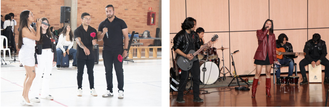 El pasado jueves 20 de noviembre, en la jornada de la mañana, el Coliseo de la Universidad de Boyacá - Tunja, y el Paraninfo - sede Sogamoso, fueron escenarios de la Muestra de Electivas Libres, un espacio académico y cultural que permitió a los estudiantes compartir los aprendizajes desarrollados en estas asignaturas de libre elección, orientadas a fortalecer su formación integral. Durante la jornada, los asistentes disfrutaron de ensambles instrumentales y muestras de danza folclórica presentados por cerca de 700 estudiantes en Tunja y 40 en Sogamoso que evidenciaron el talento, el interés y la apropiación de estos espacios formativos. Este encuentro reafirmó el valor de las Electivas Libres como una oportunidad para ampliar conocimientos, descubrir nuevas habilidades y vivir experiencias que enriquecen la vida universitaria más allá del aula.