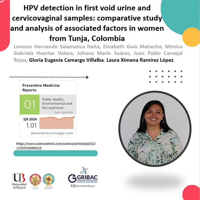 Un equipo de profesionales en ciencias de la salud, con la participación de la egresada y actual docente del programa de Bacteriología y Laboratorio Clínico de la Universidad de Boyacá, Laura Ximena Ramírez López, publicó recientemente un artículo en la revista Preventive Medicine Reports, titulado “HPV detection in first void urine and cervicovaginal samples: comparative study and analysis of associated factors in women from Tunja, Colombia”. La investigación, desarrollada conjuntamente con la decana de la Facultad de Ciencias de la Salud, Gloria Camargo, aporta evidencia científica sobre métodos de detección del Human Papillomavirus (HPV) en diferentes tipos de muestras biológicas.