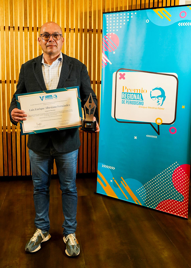 El egresado y actual docente del programa de Comunicación Social, Luis Enrique Albesiano Fernández, obtuvo el primer lugar en la categoría Mejor Trabajo Periodístico en Televisión del Premio de Periodismo Enrique Medina Flórez, gracias a su trabajo audiovisual Pasaje Vargas: “Tunja: ciudad y lugares de memoria”, una producción que hace parte de la investigación Tunja: ciudad y lugares de memoria, desarrollada de manera conjunta con investigadores de la Universidad de Boyacá y de la Universidad Pedagógica y Tecnológica de Colombia - U.P.T.C. El proyecto ganador aborda a la capital boyacense como un escenario de memoria, identidad y construcción social, integrando el rigor investigativo con una sólida narrativa audiovisual. Además del docente en mención, los egresados Felipe Ortegón Murcia, Shirley Parra Acero, Laura Maldonado Rocha (Comunicación Social), y Daniela Castañeda Guerrero (Diseño Gráfico) en la categoría Mejor Campaña de Comunicación, así como Paola Márquez Sanabria (Comunicación Social) en la categoría Mejor Trabajo Periodístico en Radio, obtuvieron el máximo galardón.