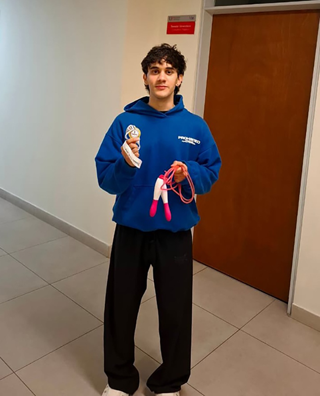Del 23 al 25 de febrero, la División de Bienestar Universitario sede Sogamoso realizó el torneo de salto con cuerda “Supera tus límites, un salto a la vez”, una iniciativa orientada a promover hábitos saludables y fortalecer la integración de la comunidad académica. El evento, que contó con la participación de 66 integrantes de la comunidad universitaria: 46 estudiantes, 16 docentes, 3 administrativos y un egresado, se consolidó como una pausa activa integral que puso a prueba la resistencia aeróbica de los participantes. En el ámbito deportivo se destacaron los docentes Natalia Sánchez (Ingeniería Ambiental), con 196 saltos, y Sergio Vargas Arquitectura) con 277. Por su parte, la egresada de Ingeniería Ambiental, María Juliana Ferrer logró 242 saltos y el estudiante de Ingeniería Industrial, Ean Ladino, alcanzó una marca de 1.000 saltos.