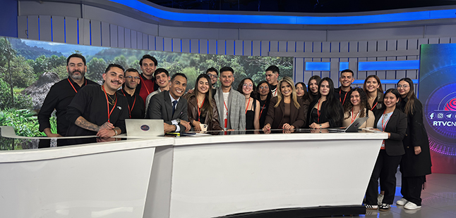 Estudiantes de las asignaturas de Periodismo Televisivo y Comunicación Pública del programa de Comunicación Social, realizaron una visita pedagógica a las instalaciones del sistema de medios públicos RTVC en Bogotá. El propósito fue fortalecer su formación académica a través de la observación directa de procesos profesionales de producción informativa y televisiva, y de contrastar las agendas informativas de los medios públicos frente a la de los medios corporativos. Esta experiencia permitió a los futuros comunicadores sociales comprender la dinámica organizativa, tecnológica y editorial de Señal Colombia, Señal Memoria, Radio Nacional, Radiónica y RTVC Play, así como presenciar en vivo la emisión del magazín de Señal Colombia “El Calentao”. Asimismo, los alumnos recibieron una breve charla sobre locución, presentación y reportería televisiva, y observaron la dinámica de producción y emisión del informativo RTVC Noticias, del mediodía.