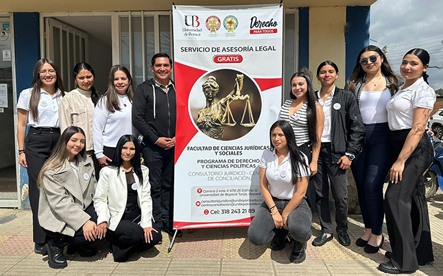 El pasado 13 de marzo en el municipio de Soracá se llevó a cabo una nueva jornada del Consultorio Jurídico Móvil, iniciativa orientada a acercar los servicios de orientación legal a la comunidad. En esta oportunidad participaron nueve estudiantes del programa de Derecho y Ciencias Políticas, quienes, bajo la orientación de la directora del Consultorio Jurídico, Abg. Érika Niño Gómez, brindaron atención y asesoría en casos relacionados con diversas áreas del derecho. La actividad, que contó con el apoyo de la Alcaldía Municipal de Soracá, está orientada a facilitar el acceso a la justicia y a fortalecer el acompañamiento jurídico a las comunidades.