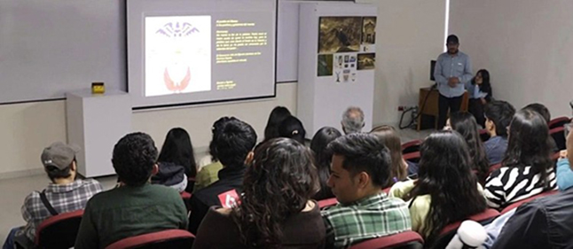 La Universidad de Boyacá propició un espacio de encuentro con el arte y la reflexión a través de la tertulia "La profecía" orientada por el artista Wilman Zabala, que reunió estudiantes de Arquitectura y Diseño Gráfico, así como visitantes de la ciudad. El trabajo del maestro Zabala se desarrolla desde una búsqueda experimental en pintura y escultura, especialmente en soportes no convencionales, que le ha permitido reflexionar sobre la memoria, el territorio, el paisaje y la arquitectura, y plantear interrogantes sobre la manera en que construimos y entendemos nuestro entorno. Dicho trabajo, ganador de la beca de Estímulos a Procesos Artísticos y Culturales de la Secretaría de Cultura de Tunja en el año 2023, ha sido exhibido en Boyacá y en distintas ciudades de Colombia, al igual que en países como México y Argentina. Durante su intervención, el Licenciado en artes plásticas de la UPTC, oriundo de Duitama, compartió su experiencia y reflexionó sobre el proceso creativo de su más reciente proyecto, donde destacó la importancia de articular la práctica artística con la docencia, promoviendo espacios de formación a través de talleres de sensibilización que integran lenguajes como la pintura y el grabado en distintos escenarios de la ciudad.