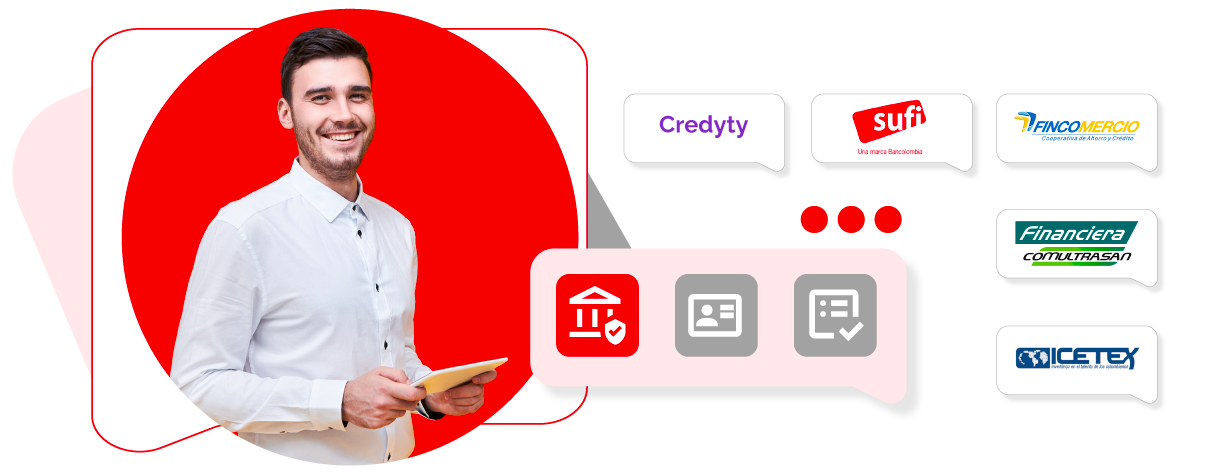 Solicita el crédito educativo con la Entidad de tu preferencia (Credyty, Fincomercio, Financiera Comultrasan, Sufi-Bancolombia, e Icetex). Conoce los requisitos para solicitar el crédito y asesores financieros aquí