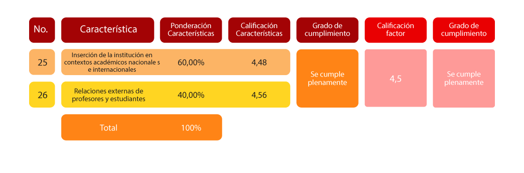 Característica 25. Inserción de la institución en contextos académicos nacionales e internacionales